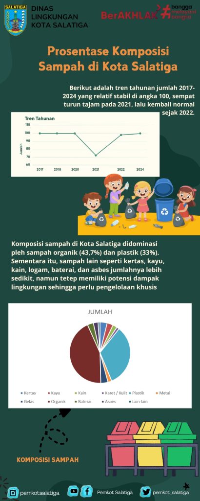 “Komposisi sampah menunjukkan proporsi jenis sampah yang dihasilkan masyarakat, mulai dari sampah organik, anorganik, plastik, kertas, logam, hingga residu. Data ini bermanfaat untuk menentukan strategi pengelolaan sampah yang tepat, seperti peningkatan program daur ulang, komposting, atau pengurangan sampah plastik sekali pakai.”